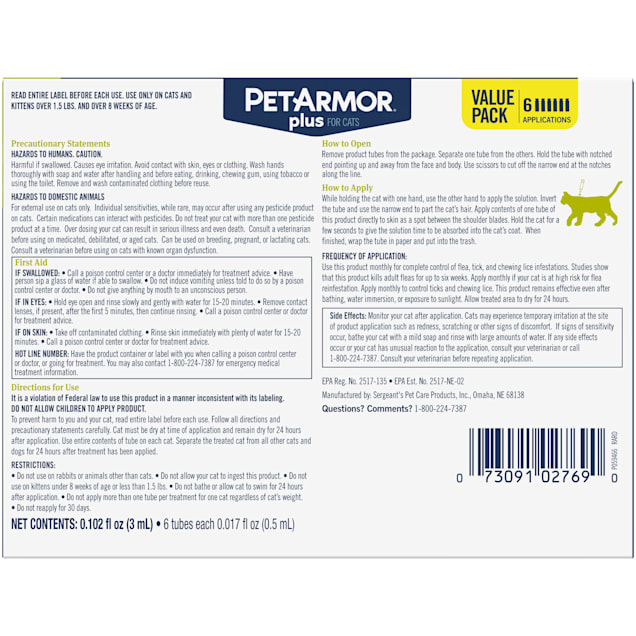 Petarmor F T Cat Squeeze On Over 1 5 Lbs Count Of 6 Petco